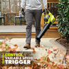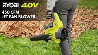 The RYOBI 40V Jet Fan Blower features a jet fan design allowing for maximum airflow. Harnessing the power of 40-Volts this blower delivers 450 CFM and 120 MPH which makes wet or dry leaf clean up simple and easy. The variable speed trigger is a great feature when working around delicate areas like flower beds. Whether you are new to the RYOBI 40V system or you are adding to your collection, this blower is a great choice to fill your leaf blowing needs. The 40V Jet Fan Blower is backed by a 5-year warranty. Battery and charger not included.